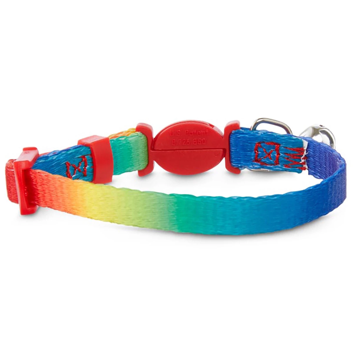 El collar para gatito Bond & Co. con estampado de arcoíris se adapta al color de pelo de tu pequeño felino gracias al espectro completo de colores en su diseño. Los dos adorarán este diseño que permite que su personalidad brille mientras te asegura de que se mantenga en buen camino al contar con un cascabel para que sepas hacia dónde se dirigen sus curiosos bigotes.