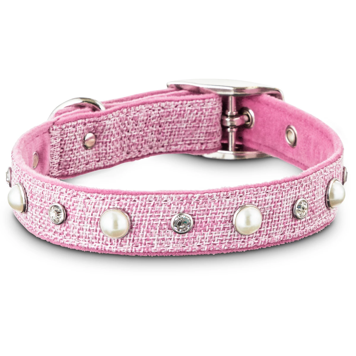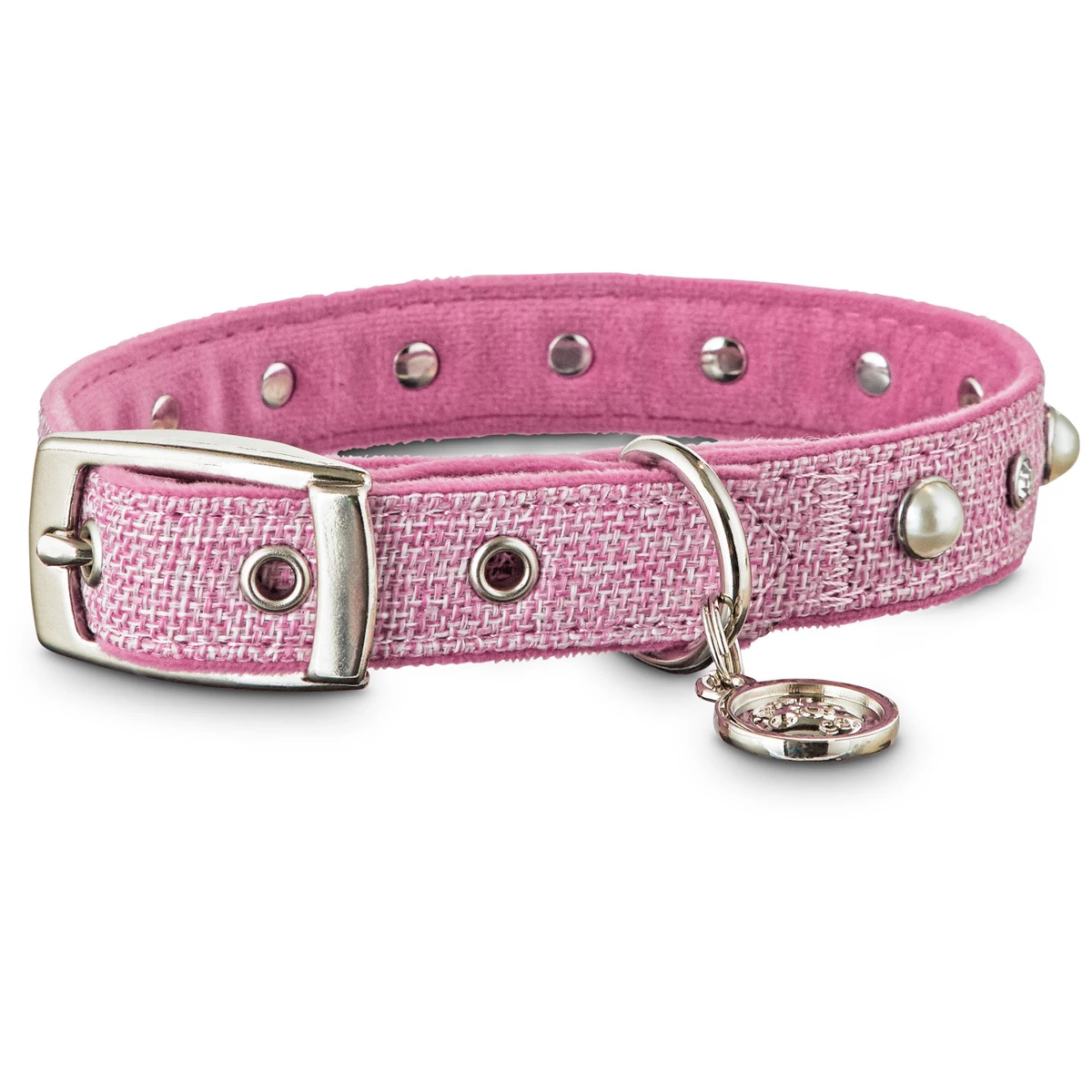 El collar Pink Tweed Bond & Co. para perros te permite refrescar la apariencia de tu cachorro mientras le ofrece una manera c贸moda de llevas su placa de identificaci贸n. Una construcci贸n de tela ultra suave y aterciopelada as铆 como herrajes met谩licos se unen para crear un accesorio elegante y atemporal.