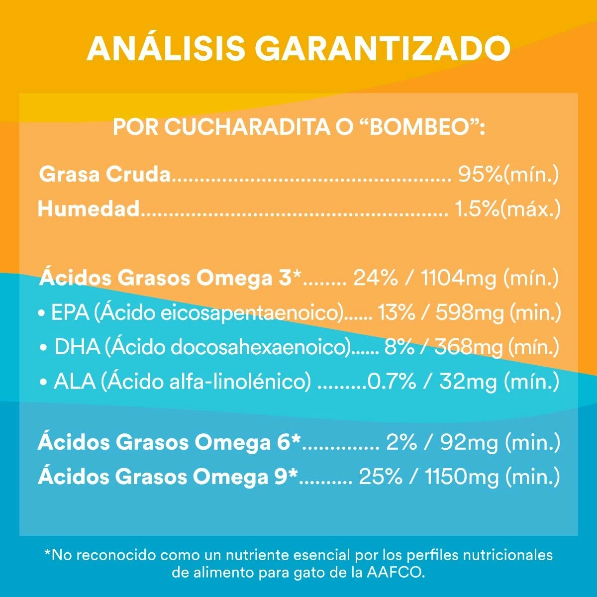 - Indicado para corregir deficiencias de ácidos grasos esenciales Omega 3 y 6.