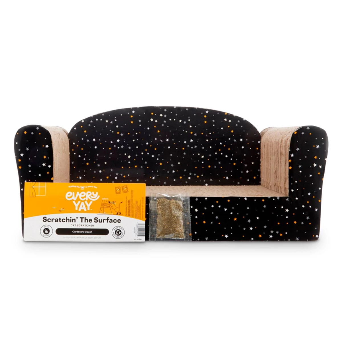 El rascador de cartón EveryYay Scratchin ‘the Surface en forma de sofá permite que tu gatito se sienta cómodo en su propia sala. Ahora puedes continuar con tu día a día sin preocupaciones sabiendo que tu gato estará ocupado rascando el cartón hecho de papel 100% reciclado en lugar de tu sofá. El aburrimiento nunca llega gracias a la hierba gatera que incluye este simpático rascador.