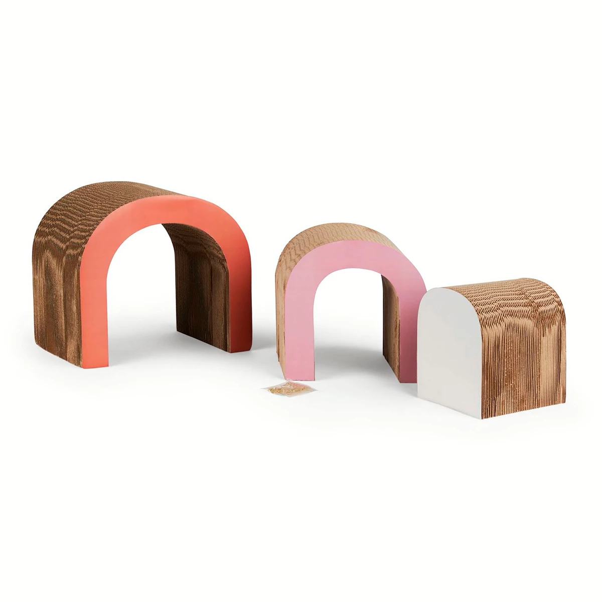 - Increíble rascador horizontal 3 en 1 diseñado con forma de arcoíris de EveryYay para gato.