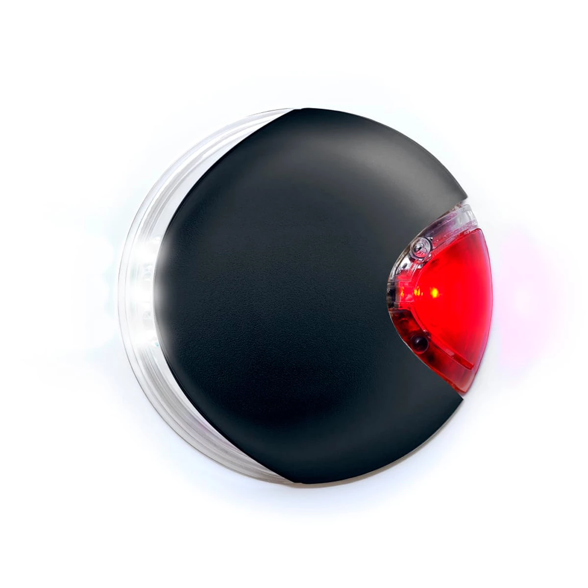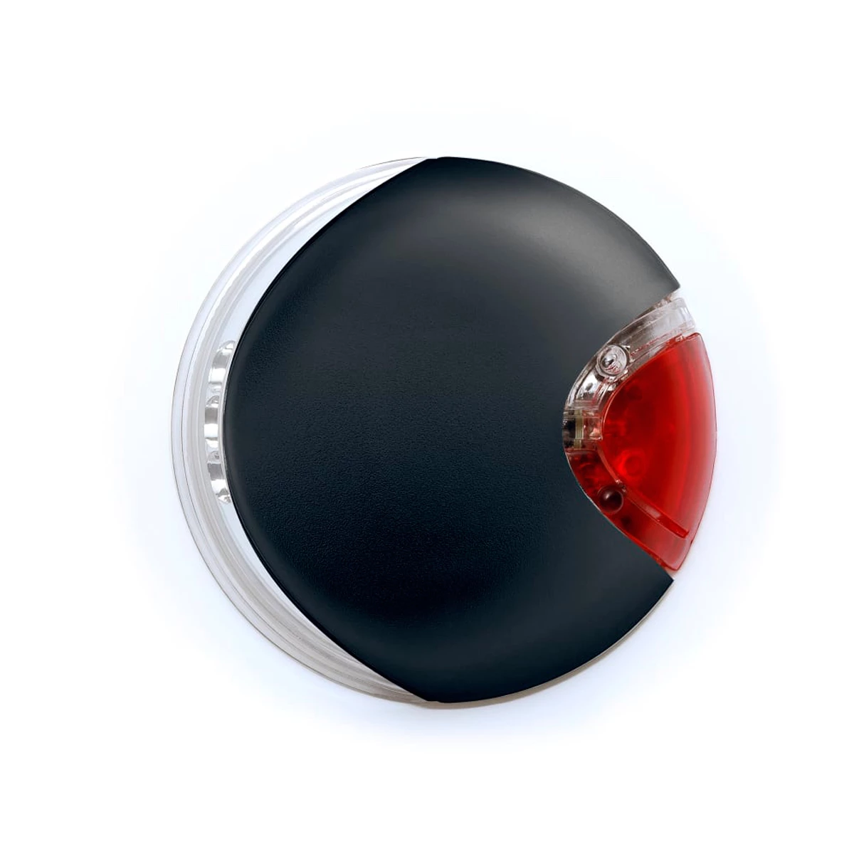 La linterna tiene dos luces, una blanca frontal y otra trasera de color rojo que pueden conectarse y desconectarse de forma individual. La linterna se fija fácilmente a la correa gracias a un sistema de velcro. Pilas incluidas