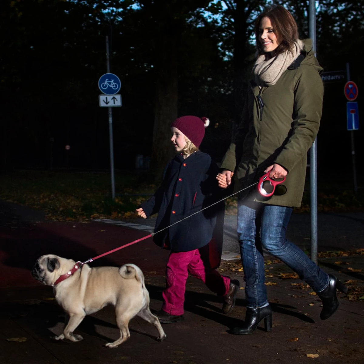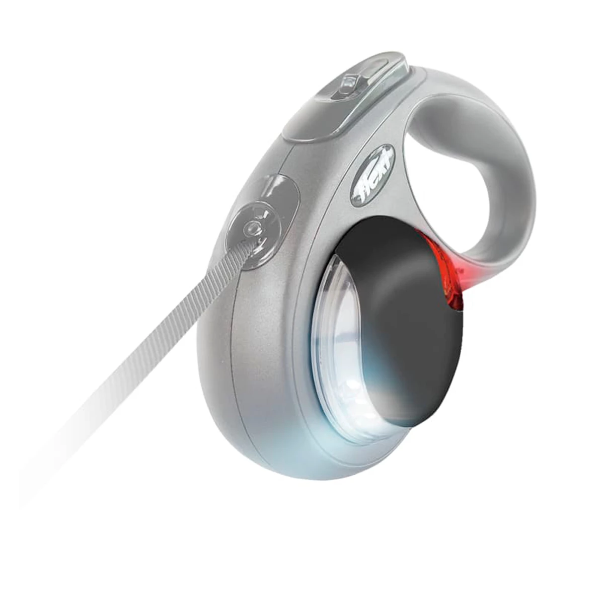 La linterna de luz LED para correas Flexi Vario es el complemento perfecto para pasear de forma segura con tu perro durante la noche.