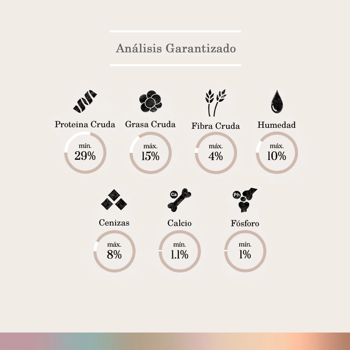 - Máxima absorción de nutrientes con minerales orgánicos y proteína de origen animal y vegetal.