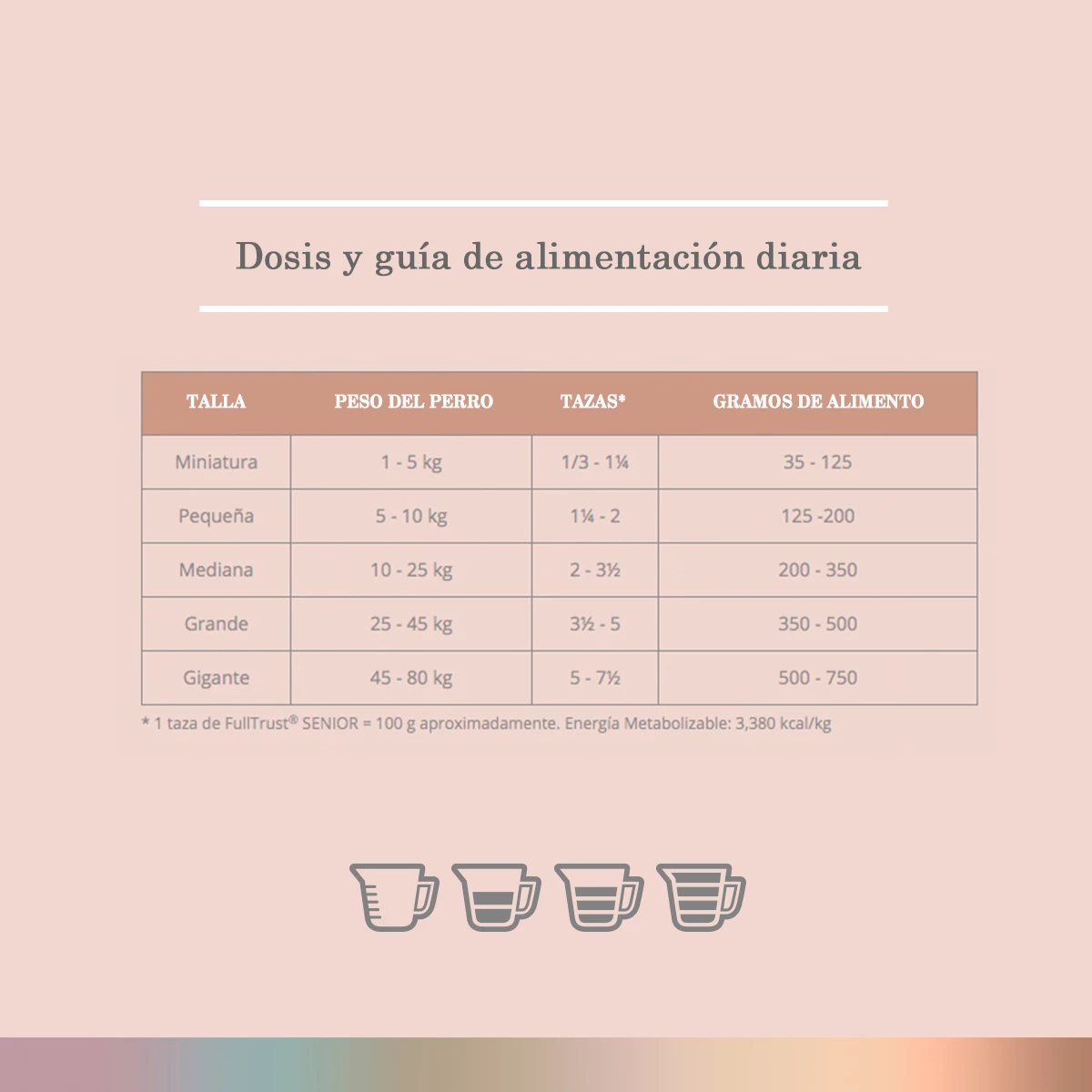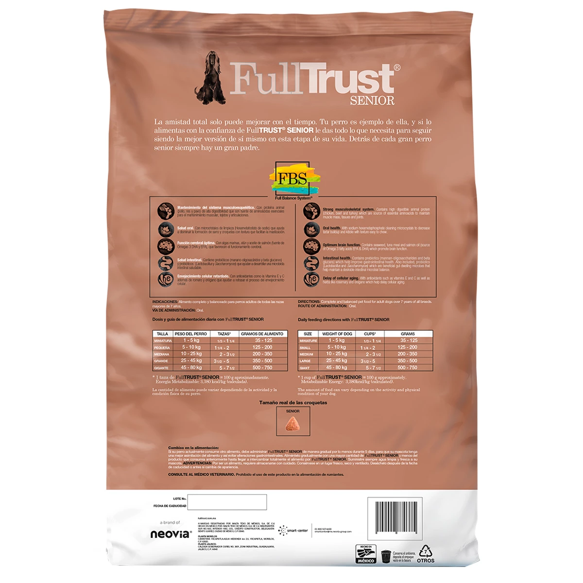 FullTrust alimento para perro Senior cuenta con ingredientes selectos y la más alta tecnología en alimentación, para satisfacer los requerimientos nutricionales de los perros de edad avanzada. Gracias a su sistema Full Balance System, FullTrust ayuda a retardar el envejecimiento celular, ayuda a mantener el sistema musculo esquelético, mantiene articulaciones sanas, promueve una buena salud dental, ayuda a la función cerebral óptima y una digestión saludable.