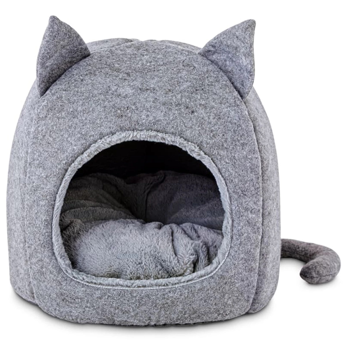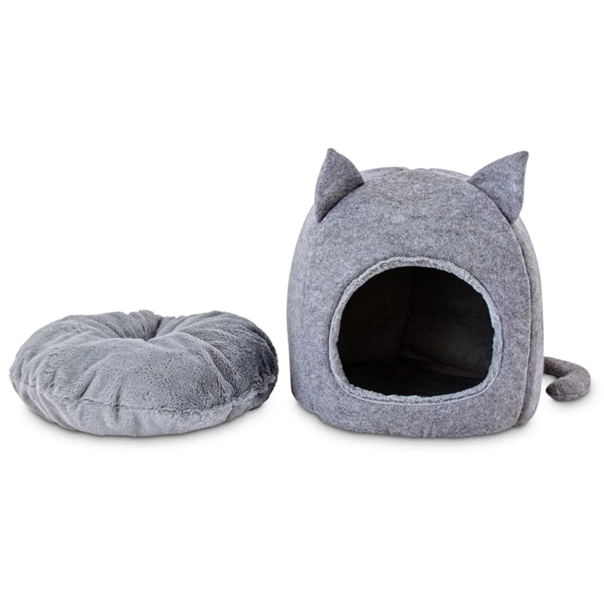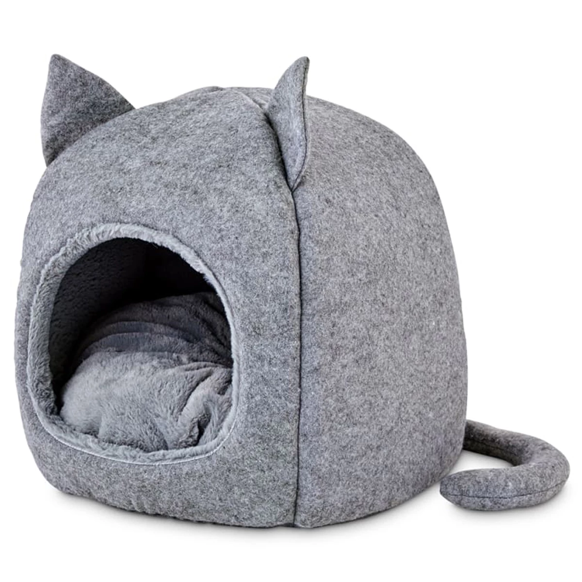 La cama para gatos tipo igl煤 con capucha felina de Harmony es un refugio de estilo escondite que los gatitos amaran. Agregando fantas铆a a la habitaci贸n con su forma felina, orejas y cola, esta cama para gatos presenta una exterior tipo fieltro y un interior lujoso para que su gatito se acurruque para una siesta en solitario.