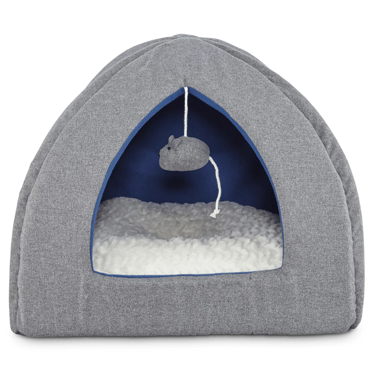 La cama para gato tipo cueva con juguete de Harmony presenta una superficie de felpa con textura ideal para dormir dentro de un iglú, excelente para aquellos gatitos que prefieren un poco de privacidad cuando descansan. Esta cama para gatos se puede lavar a máquina para que puedas mantenerla fresca para tu felino.