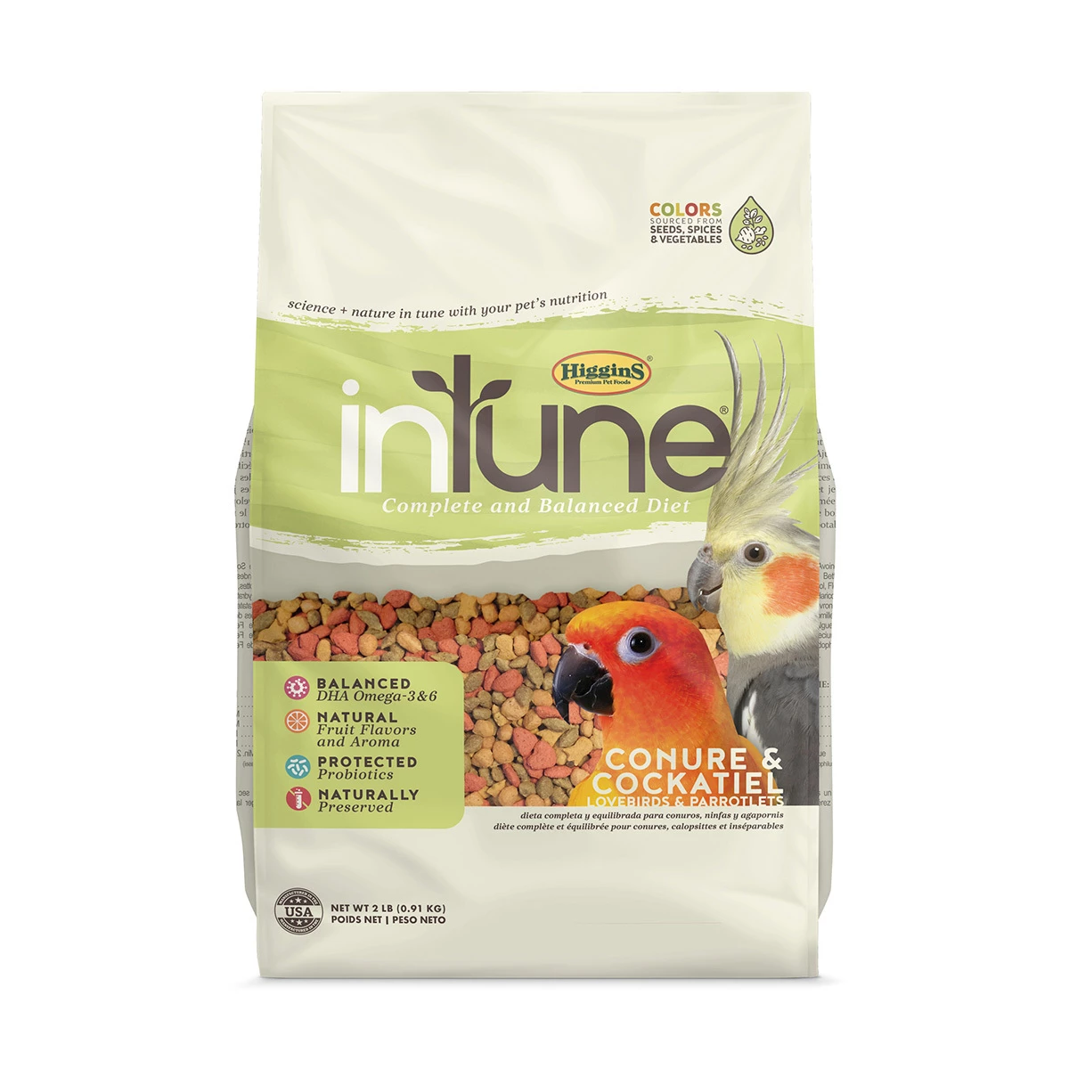 Higgins inTune Complete and Balanced Diet es la nutrición extruida que pone la ciencia y la naturaleza en sintonía con el bienestar de su ave mascota. inTune no contiene conservantes ni sabores artificiales. inTune utiliza colores procedentes de semillas, especias y verduras para obtener colores naturales y sutiles. El aroma tropical que notará tan pronto como abra la bolsa se deriva de plátano, piña y cítricos reales.