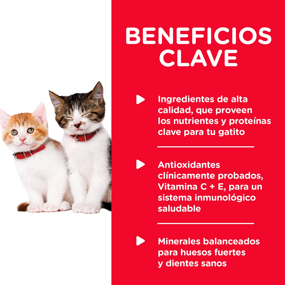 - Ingredientes de alta calidad que aseguran la disponibilidad de nutrientes clave y proteínas para su gatito.