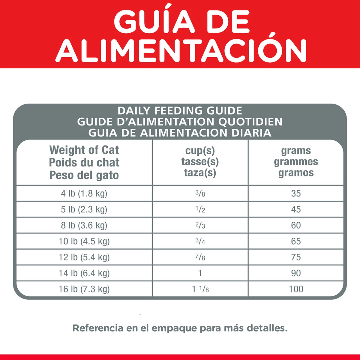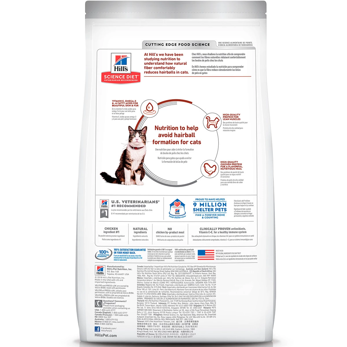 El alimento seco para gatos Hill’s Science Diet Hairball Control Adult proporciona nutrición para ayudar a evitar la formación de bolas de pelo en gatos.