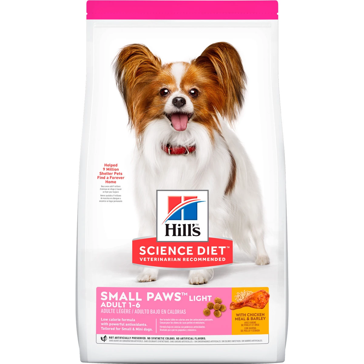 El alimento para perros Hill’s Science Diet Small Paws Light Adult es nutrición diseñada para perros adultos de raza pequeña o miniatura, menos activos que requieren un alimento bajo en calorías para ayudarlos a conservar un peso y estilo de vida sanos. Especialmente hecho en bocados de tamaño pequeñito.