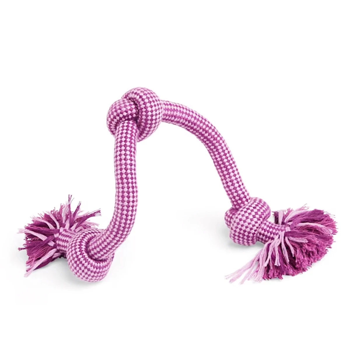 隆Es hora de jugar a tirar y jalar la cuerda, masticar, buscar y pasar el mejor momento con este juguete de cuerda anudada de Leaps & Bounds! 隆Fabricado con materiales reciclados, proporciona entretenimiento sostenible para tu cachorro activo!