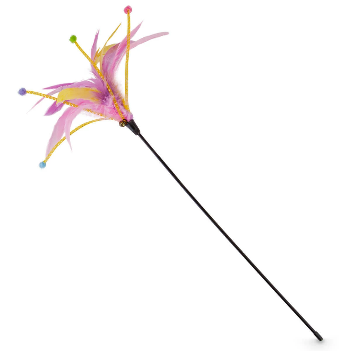 - Juguete para gatos con diseño de varita con plumas multicolor de Leaps & Bounds.