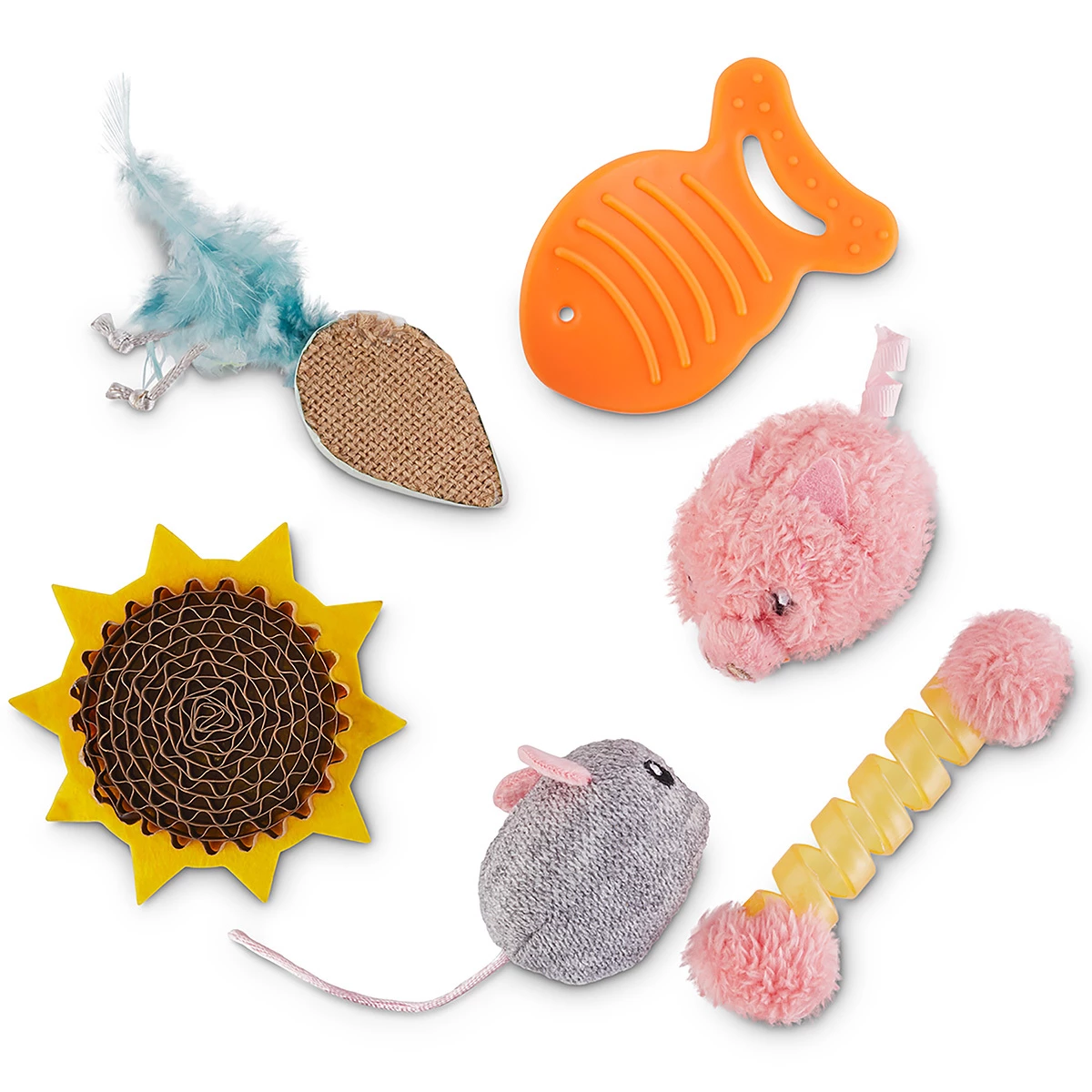 - Paquete de 6 juguetes dise帽ado por expertos para diversi贸n y funcionalidad.