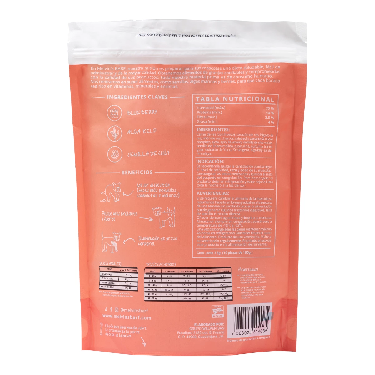 Melvins BARF es un alimento natural, congelado y balanceado para perro basado en el concepto BARF, el cual utiliza ingredientes crudos para replicar lo que comería tu perro en su estado natural. Elaborado con carne, vísceras, verduras y frutas, aportando antioxidantes, vitaminas, enzimas, aminoácidos y minerales de la forma más básica y asimilable para tu perro. Este alimento es libre de harinas, subproductos e ingredientes artificiales.