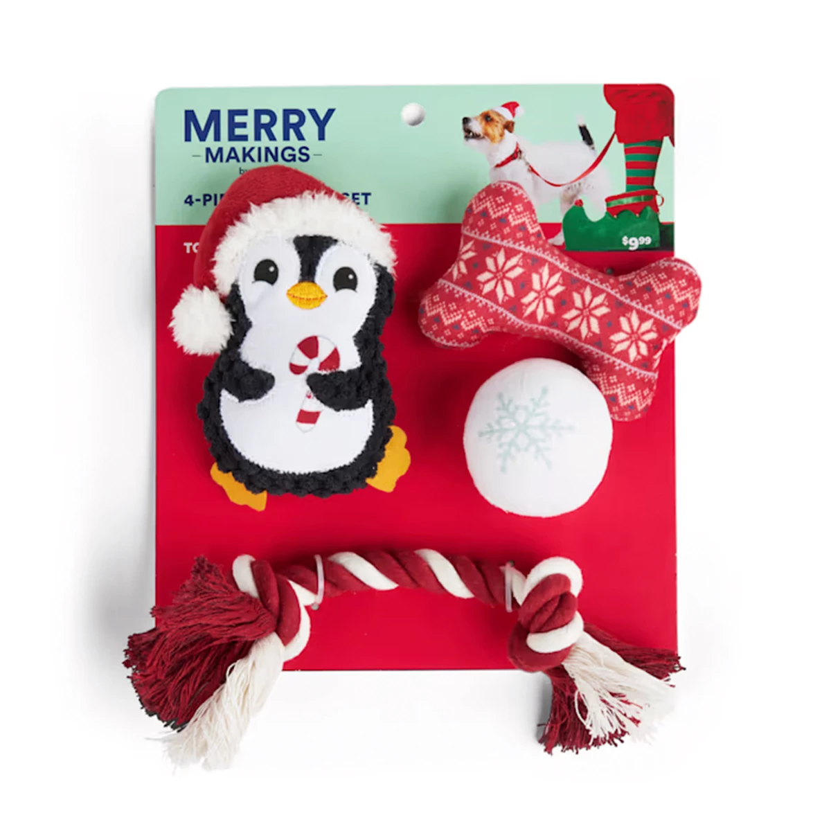 - El paquete m煤ltiple incluye: juguete de ping眉ino, pelota y hueso.