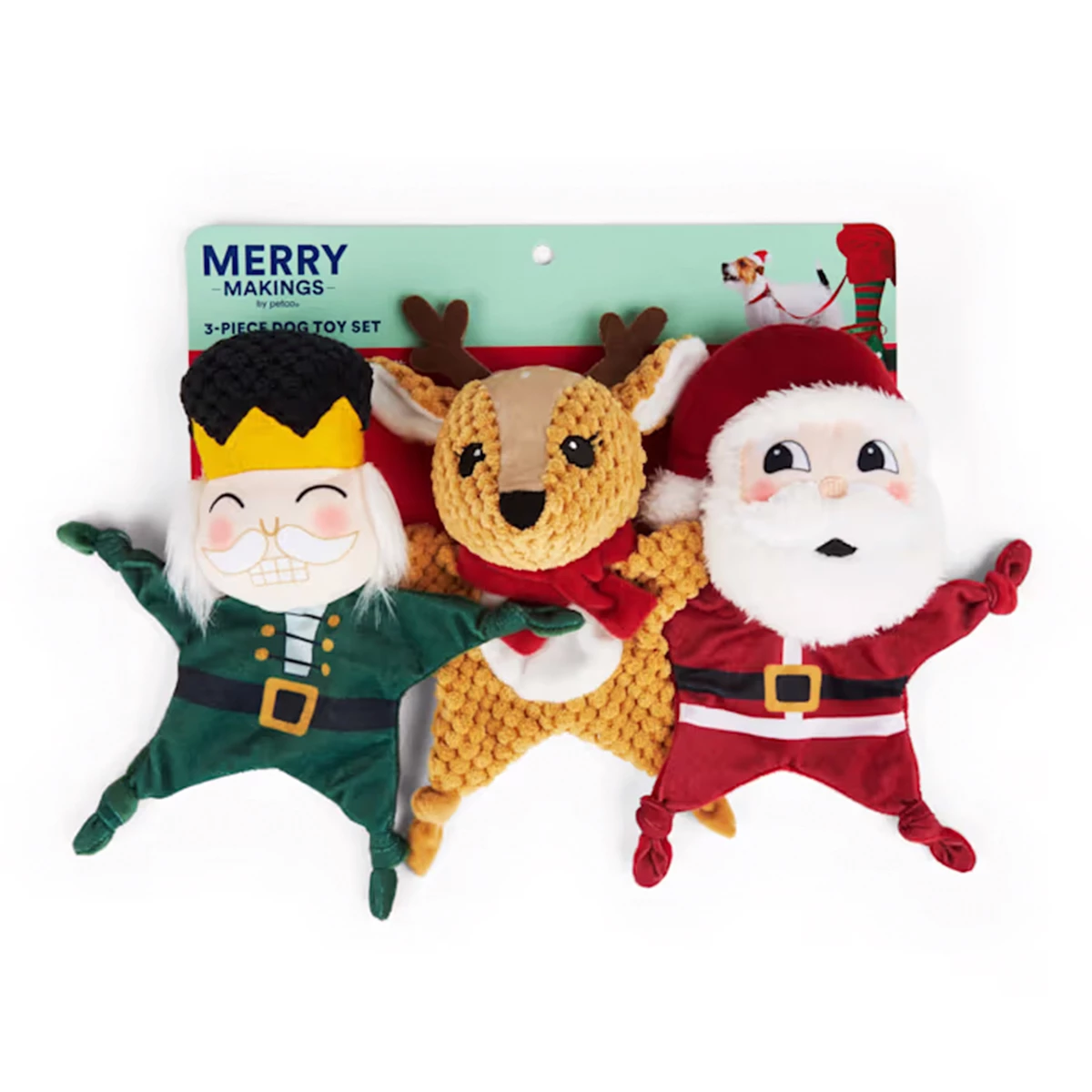 - Set de 3 peluches para mascota: Cascanueces, Santa y Reno con material que hace ruido al tacto.