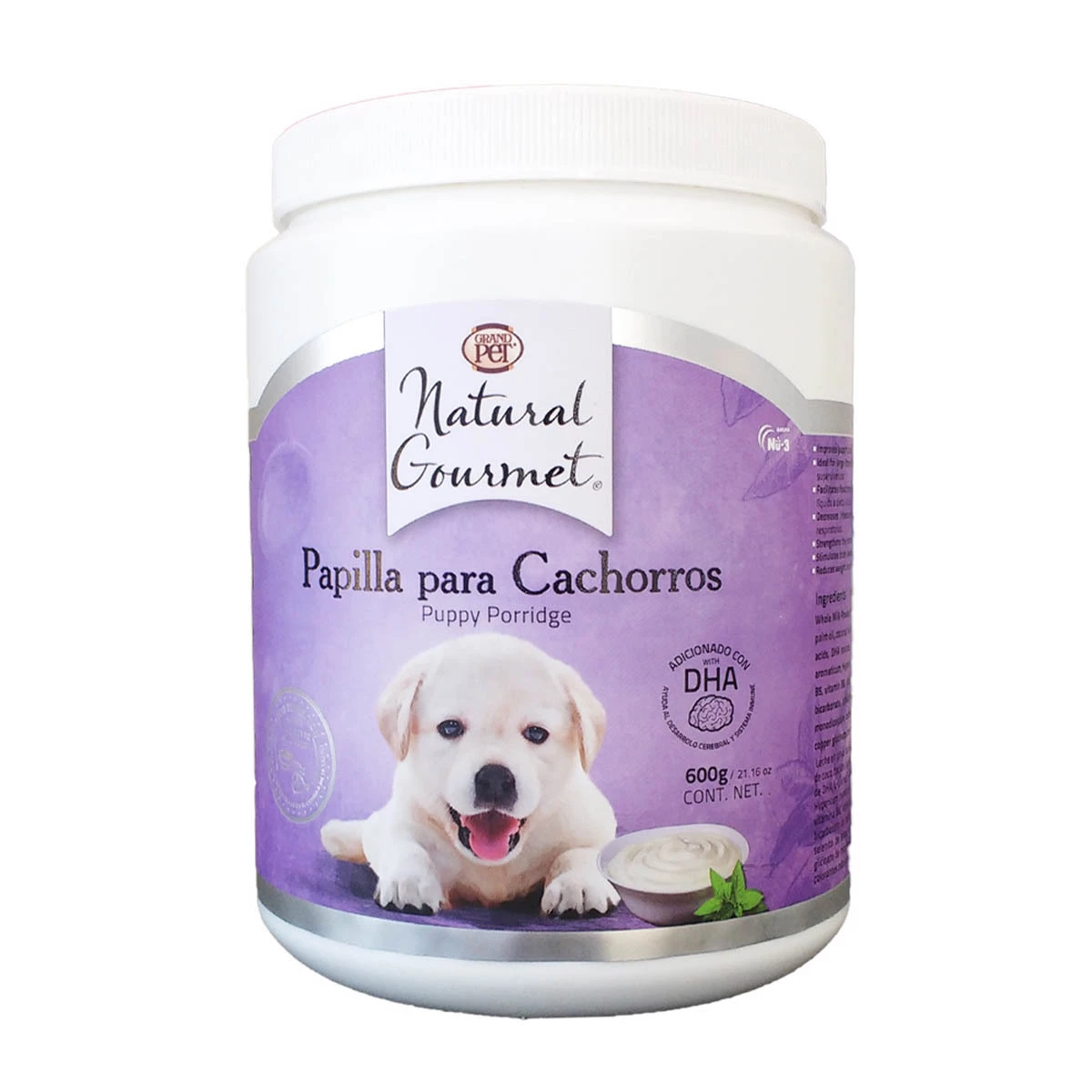 Es un alimento completo y equilibrado nutricionalmente Para Cachorros que comienzan a abandonar la lactancia. Durante esta fase PAPILLA GRANDPET NATURAL GOURMET permite una suave transición de la leche materna a una alimentación sólida siendo ésta rica en proteínas grasas minerales y vitaminas que los Cachorros necesitan.