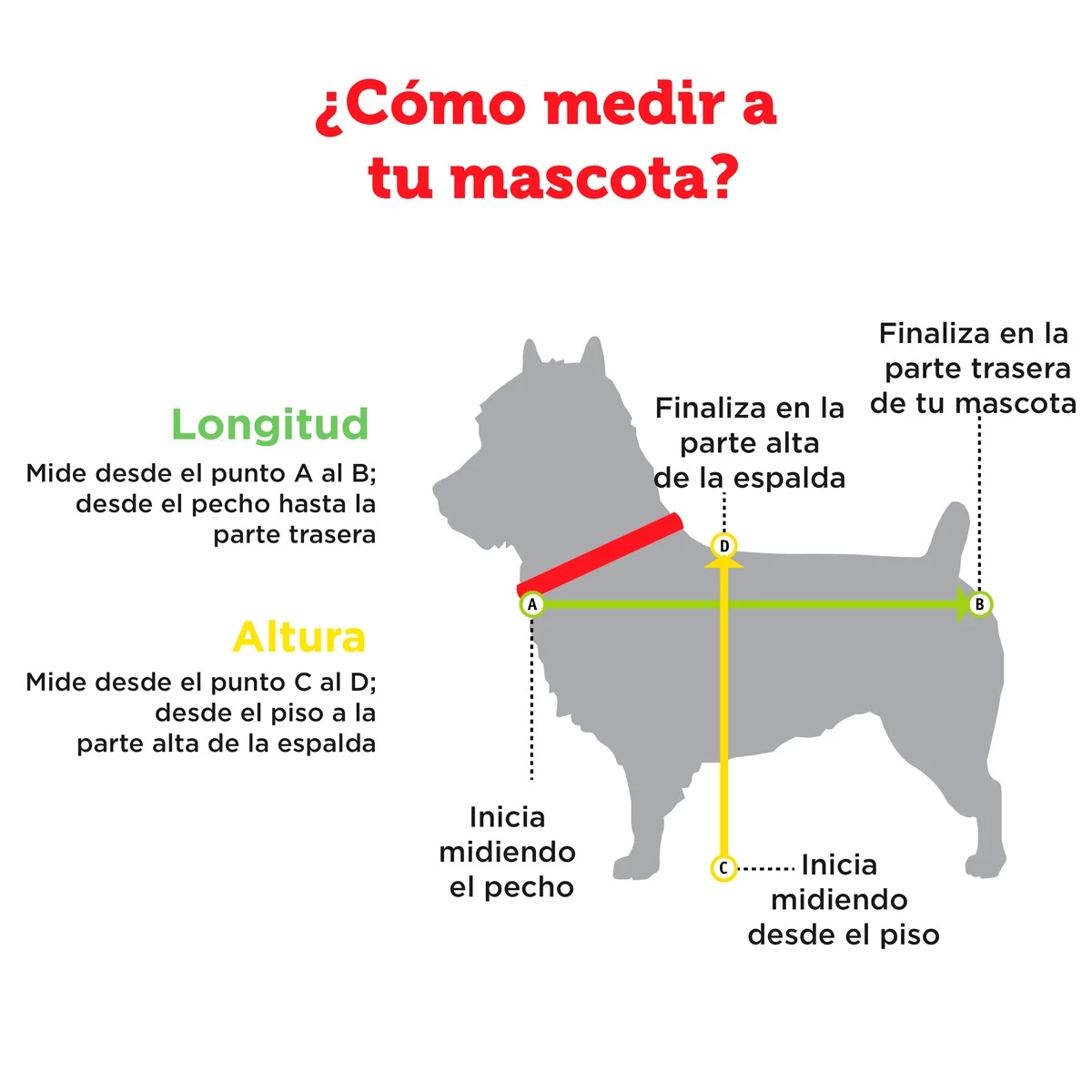 - Límite de medidas de la mascota: 41 cm (largo) x 25 cm (alto).