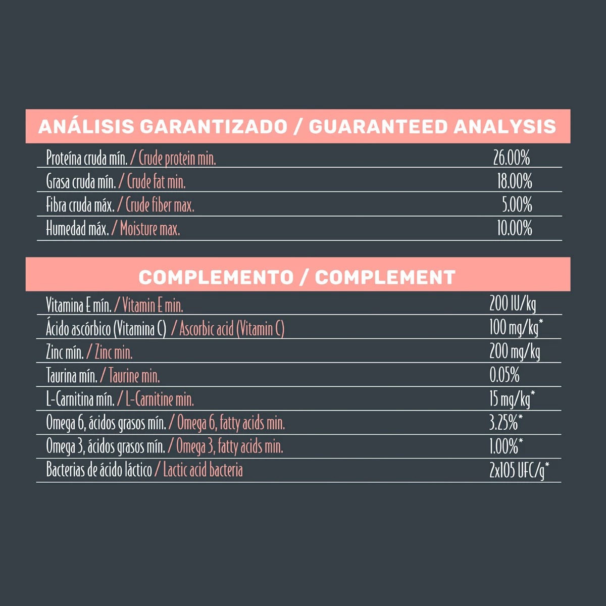 - Con aminoácidos esenciales, de fuentes no complejas para facilitar la digestión y liberar de forma sencilla los nutrientes.