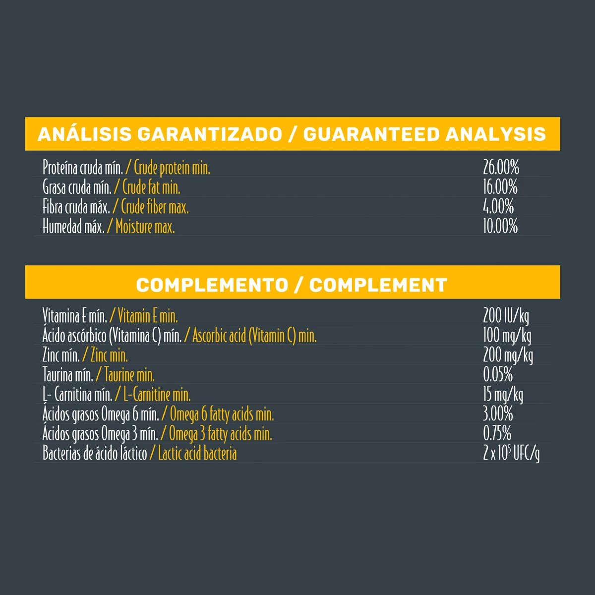 - Con aminoácidos esenciales, de fuentes no complejas para facilitar la digestión y liberar de forma sencilla los nutrientes.