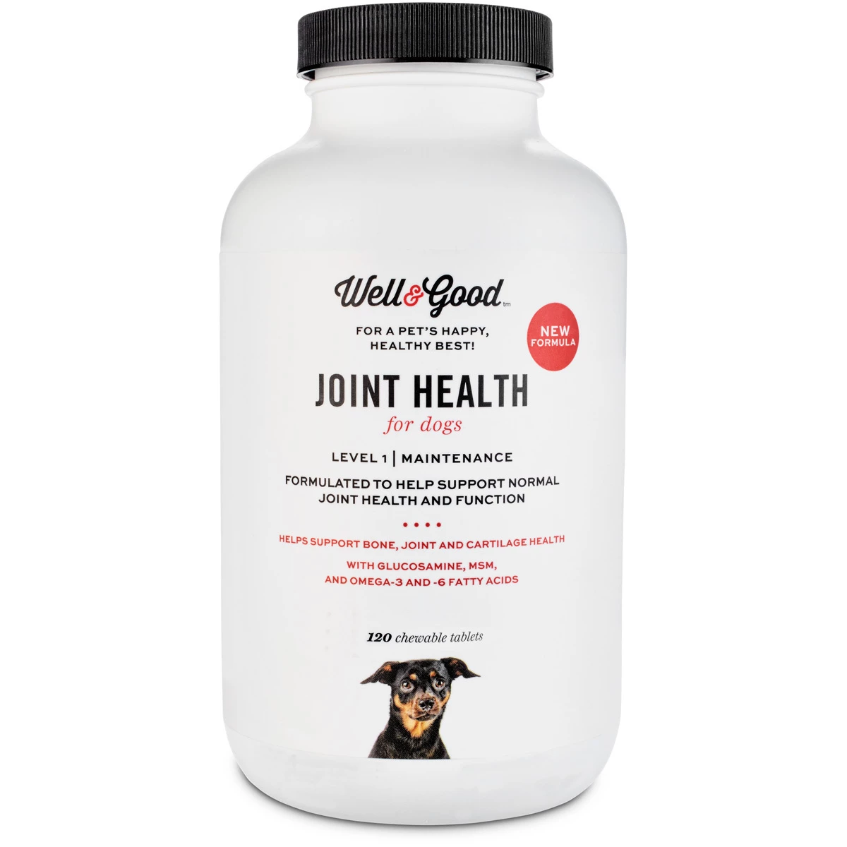 Las tabletas para la salud articular de nivel 1 para perros de Well & Good ofrecen una fórmula avanzada que respalda las funciones de las articulaciones y los tejidos conectivos para aliviar la rigidez de las articulaciones debido al ejercicio diario. Son ideales para perros adultos activos de razas medianas a grandes y también son irresistibles gracias a su sabor a pollo.