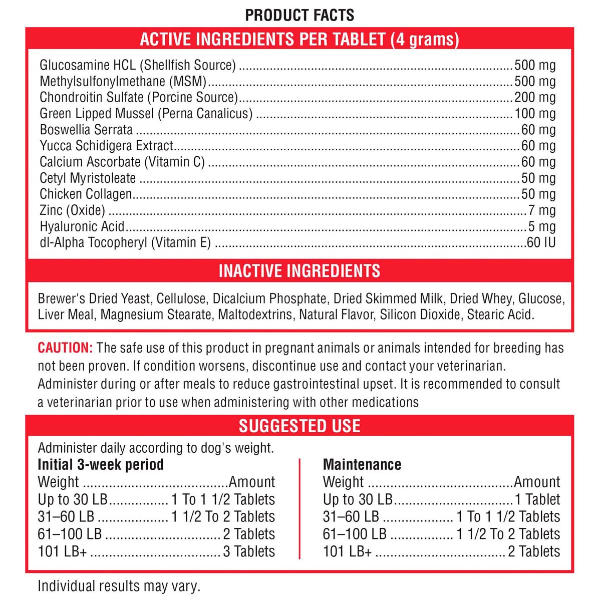 - Tabletas masticables para apoyar la salud articular de los perros de razas medianas a grandes.
