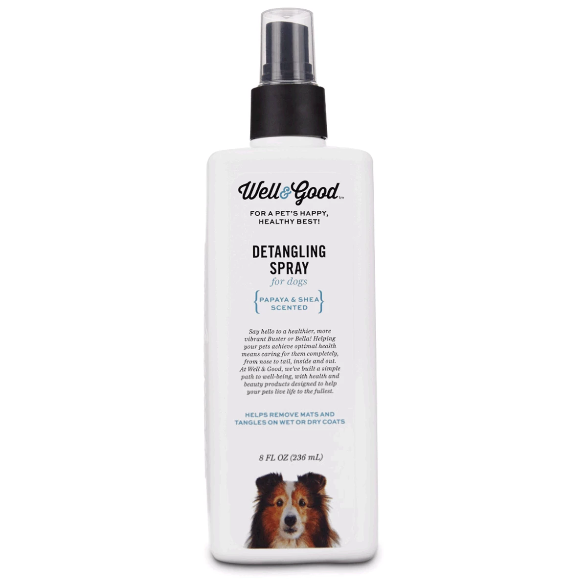 El Spray desenredante para perros de Well and Good es una solución conveniente y fácil de usar para eliminar de manera eficiente pelo muerto y nudos molestos cuando un cepillo o peine solo no lo logra. Ideal para usar en pelo húmedo o seco, Well and Good Spray es la solución perfecta para las necesidades de tu mascota. Con un refrescante aroma a papaya y karité para que el pelaje de tu perro luzca brillante y sea manejable.