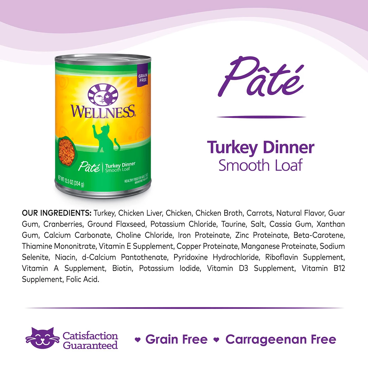 Wellness Complete Health Libre de Granos Paté para Gato Receta de Pavo es un alimento saludable y natural para tu gato. Contiene excelentes fuentes de proteínas y ácidos grasos para brindarle a tu felino una nutrición completa y equilibrada. Además, está adicionado con vitaminas, minerales que ayudan a mantener su tracto urinario saludable. Su fórmula con proteínas de alta calidad, está libre de hormonas de crecimiento y esteroides. Se recomienda el uso de la comida enlatada Wellness para cubrir la necesidad de alimentos húmedos en la dieta de tu gato.