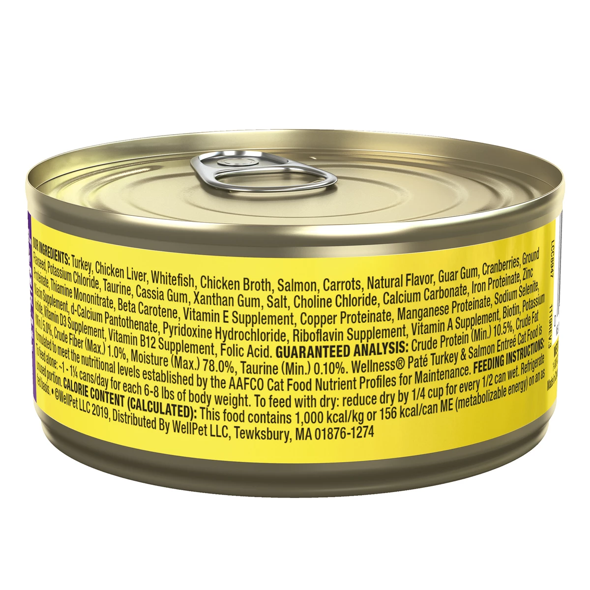 Wellness Complete Health Alimento húmedo para Gato Receta Paté de Pavo y Salmón, es un alimento saludable y natural para tu gato. Su fórmula con proteínas de alta calidad, está libre de hormonas de crecimiento y esteroides. Contiene excelentes fuentes de proteínas y ácidos grasos para brindarle a tu felino una nutrición completa y equilibrada. Además, está adicionado con vitaminas, minerales que ayudan a mantener su tracto urinario saludable. Se recomienda el uso de la comida enlatada Wellness para cubrir la necesidad de alimentos húmedos en la dieta de tu gato.