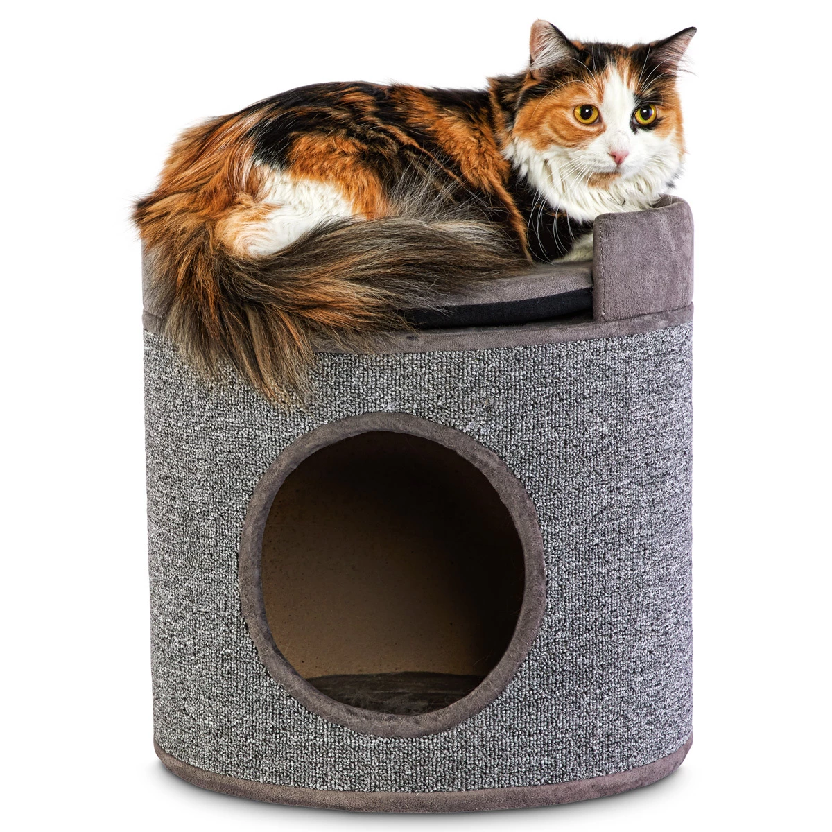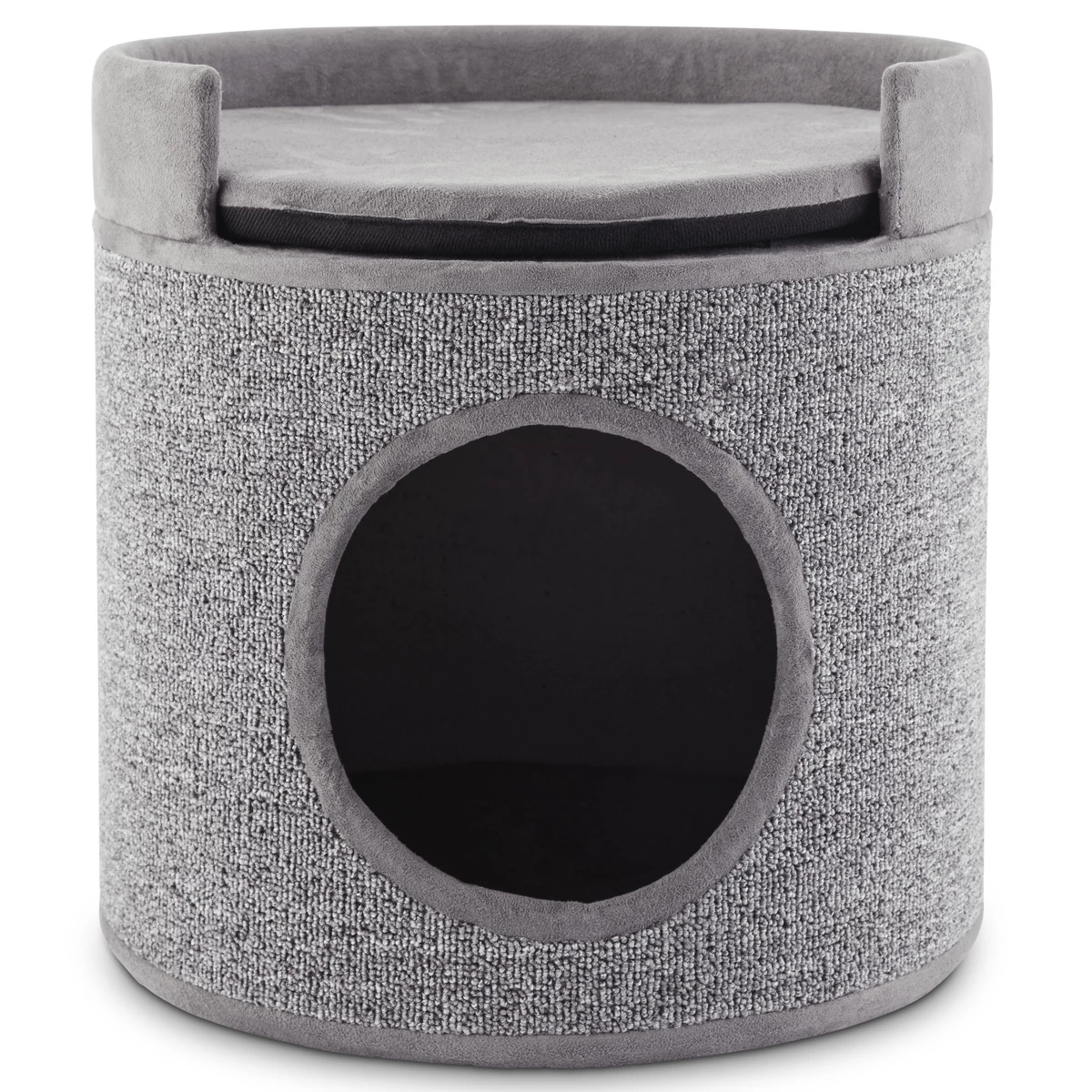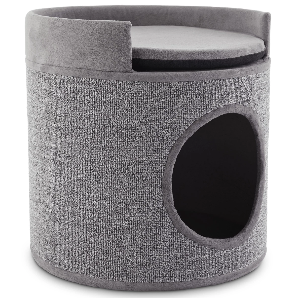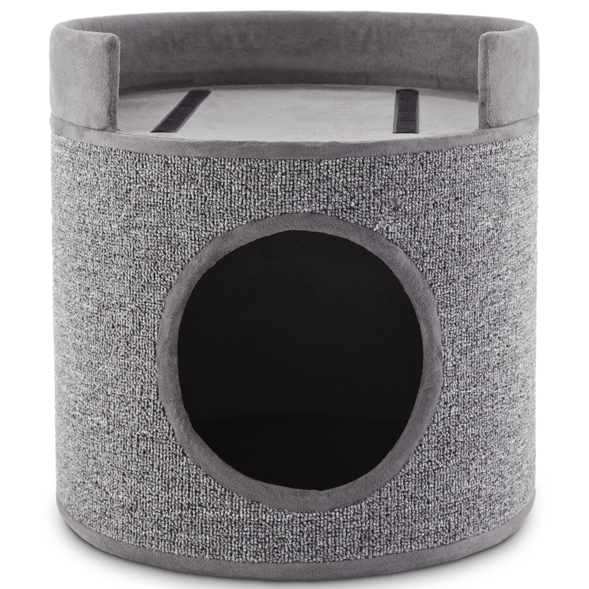 El Cozy Cottage Cat Condo con percha y cojín de You & Me le brinda a tu gato un lugar de descanso que incluye un escondite cómodo para rascar y dormir dentro. Su tamaño compacto también lo hace ideal para espacios pequeños. En la parte superior incluye un suave cojín para que tu gato descanse viendo el día pasar de manera cómoda y relajada. Gracias a su textura de alfombra también tu gato podrá saciar su necesidad de rascar.